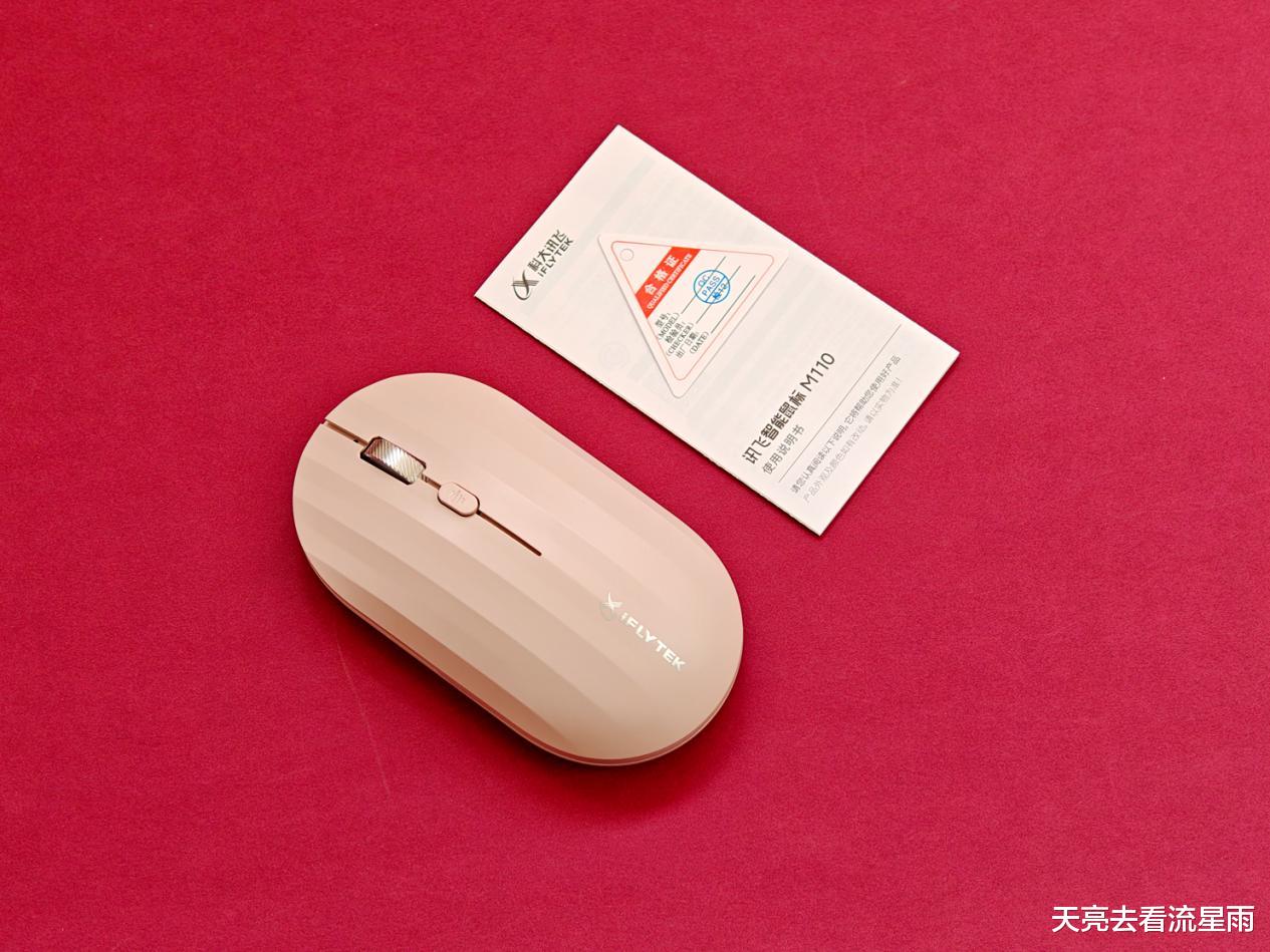 科大讯飞无线蓝牙鼠标M110我已经入手了一个松霜绿款放在办公室用,因为使用的还较满意,所以在家里用的鼠标挂了之后,便又入手了一个樱桃粉,再聊聊这个鼠标使用的一些感受。鼠标的包装盒还是白色风格,尺寸112×60×31mm,重量86g,这款鼠标的握持感比较适合手小的人。
