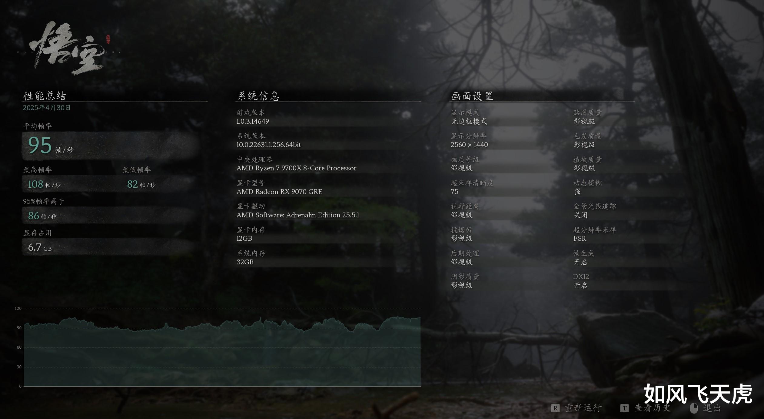 通过上面3DMARK软件的多个项目的测试结果,可以看出这款蓝宝石PURE极地RX 9070 GRE的表现还是很不错的。通过各项的测试成绩一看,同RTX 5070打个有来有回的,竞争激烈。下面我们来看看实测游戏的表现。