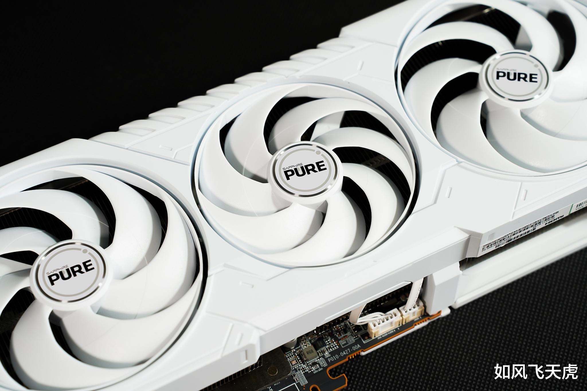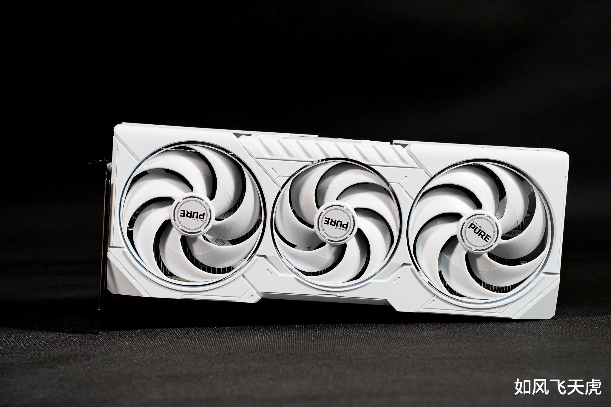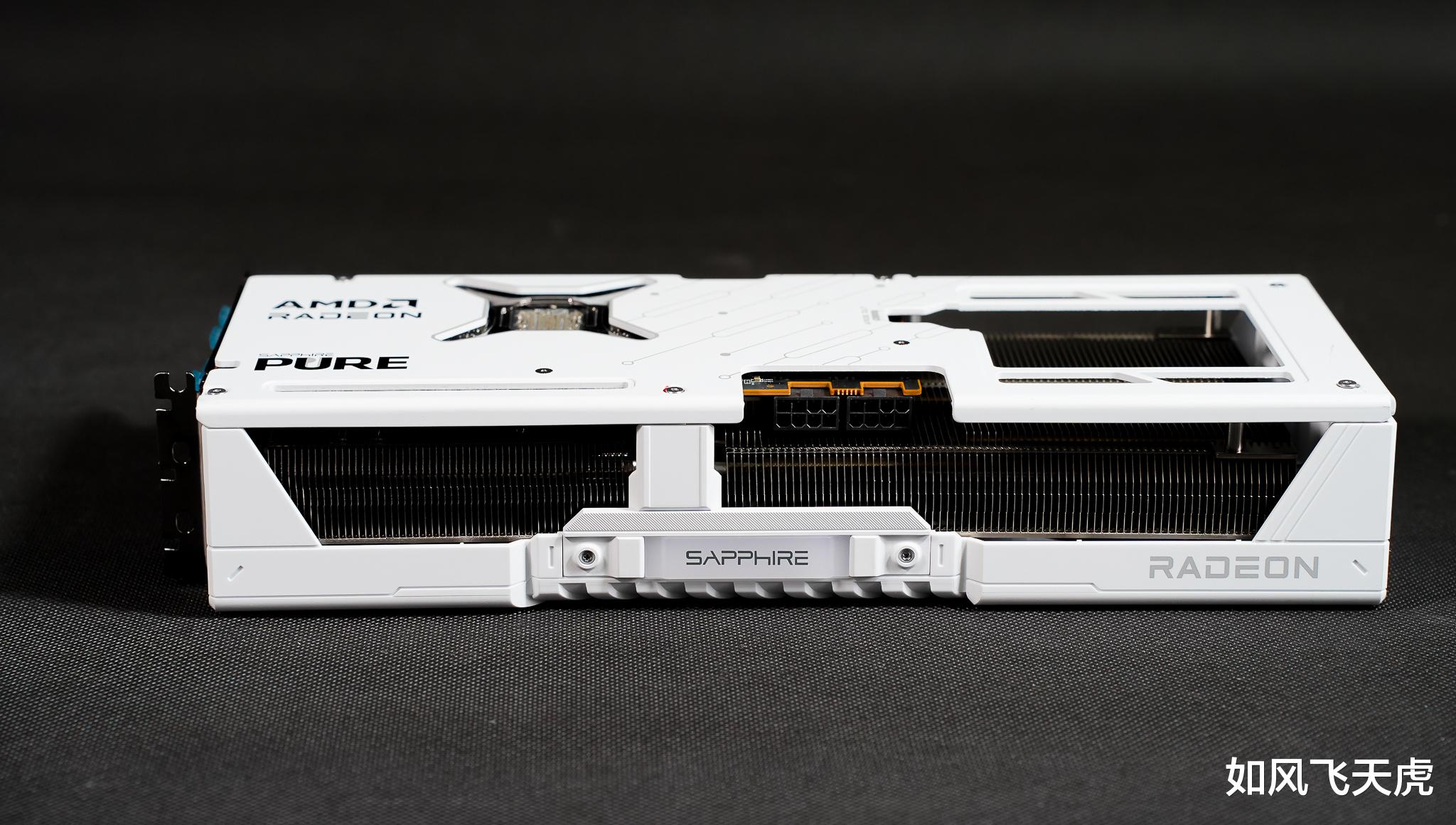 这款蓝宝石PURE极地RX 9070 GRE具有漂亮的外观,一体式框架设计,全金属背板,坚固、利于散热。一体式散热设计,飞翼轴流风扇,对穿风道设计,加厚鳍片、优化热管,为显卡提供了良好的散热,从而确保显卡性能的正常发挥。