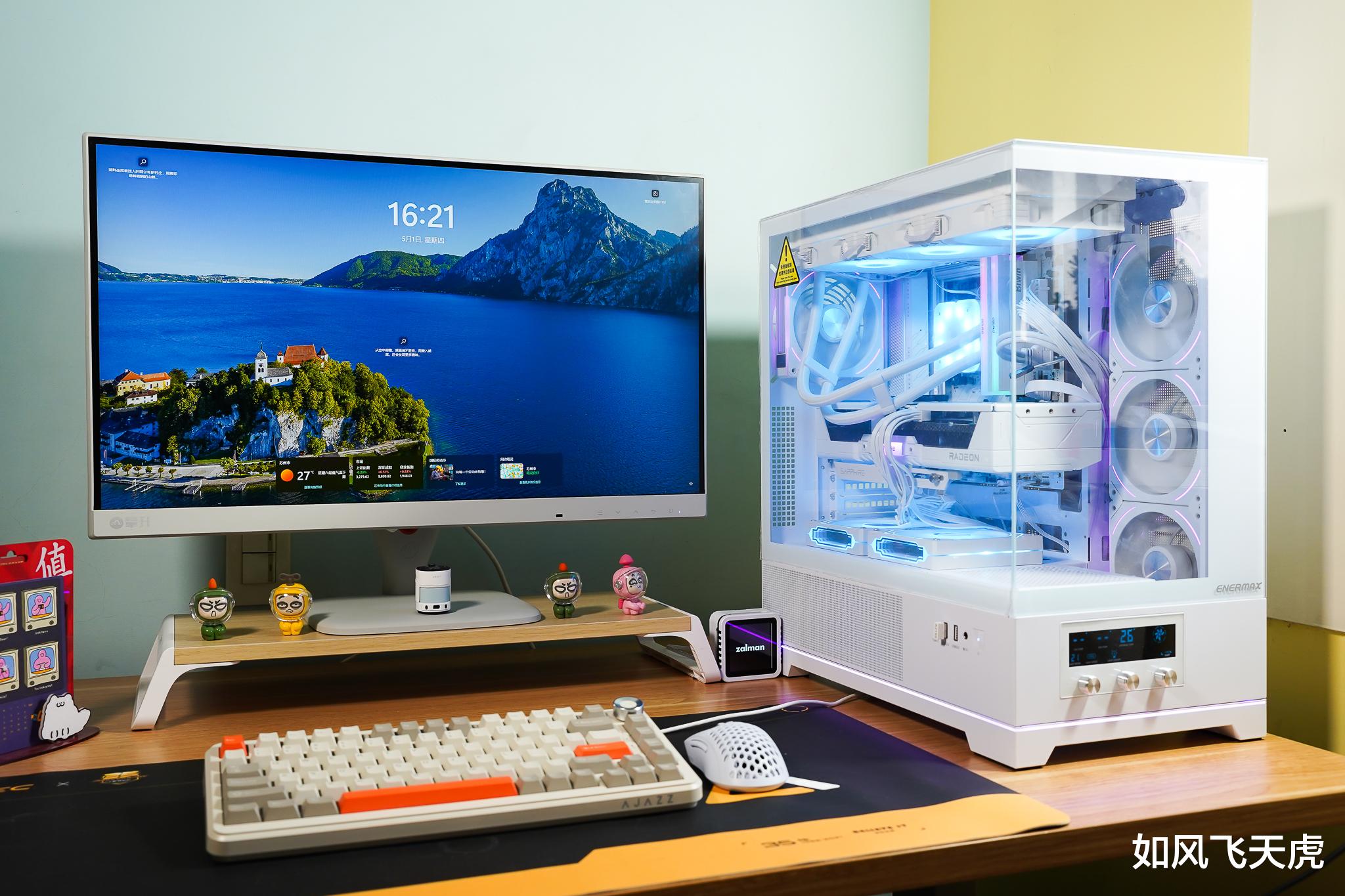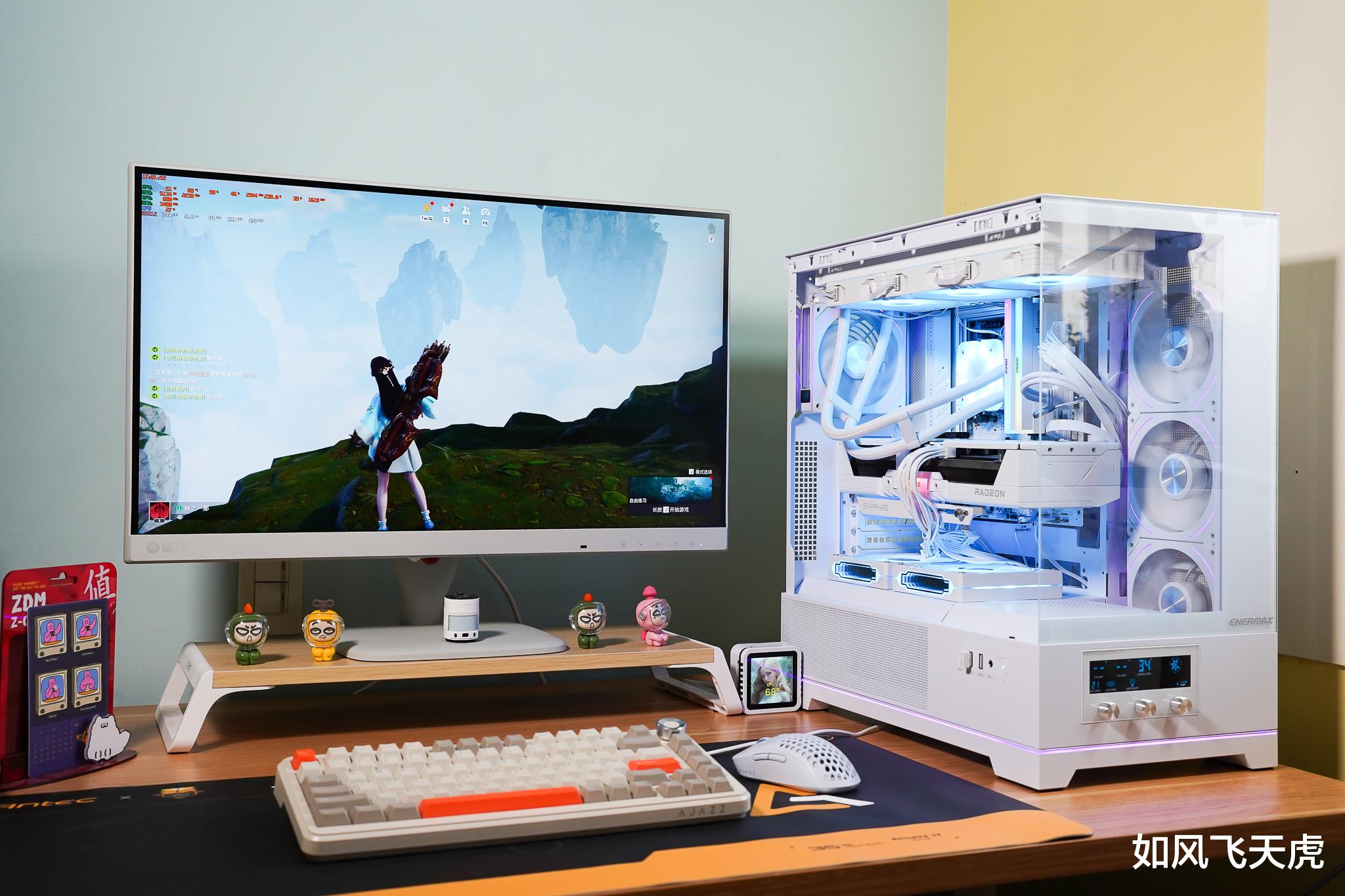 将显卡安装到电脑机箱内,然后启动顺利进入系统。我们看显卡中间的灵动岛泛出了 彩色的光,它可以通过软件或者主板软件进行控制。