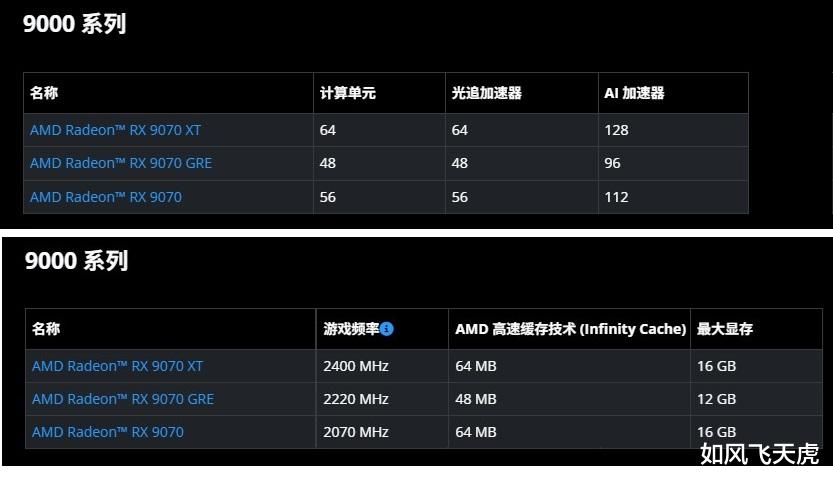 根据官网资料,核心方面,RX 9070 XT与RX 9070分别采用Navi48 XTX与Navi48 XT,而RX 9070 GRE则采用了Navi48 XL,拥有48个计算单元(CU),48MB高速缓存,12GB显存,游戏频率要高于RX 9070。可看出这款显卡定位介于RX 9070和RX 9060 XT之间,性能上对标NVIDIA RTX 5070,同时压制RTX 5060 Ti 8GB/16GB。