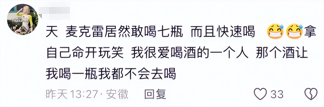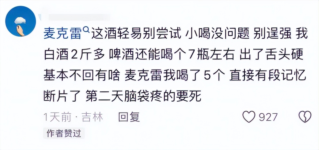 还有其他网友表示,自己也曾喝过麦克雷,这酒后劲很大,还有网友透露自己平时是一斤白酒的酒量,这个网红啤酒,自己喝了一瓶就上头,后来再也没敢尝试。