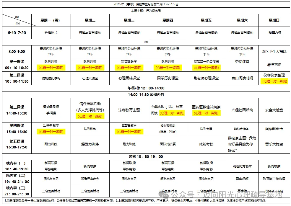 春回大地,万物向荣。新的一周已经开始,现将本周主要课程安排及活动计划公示如下。本周课程设计围绕“身心协同、信任重建、思维拓展、生命教育”四个维度展开,旨在通过多元化场景,帮助孩子在体验中获得成长。