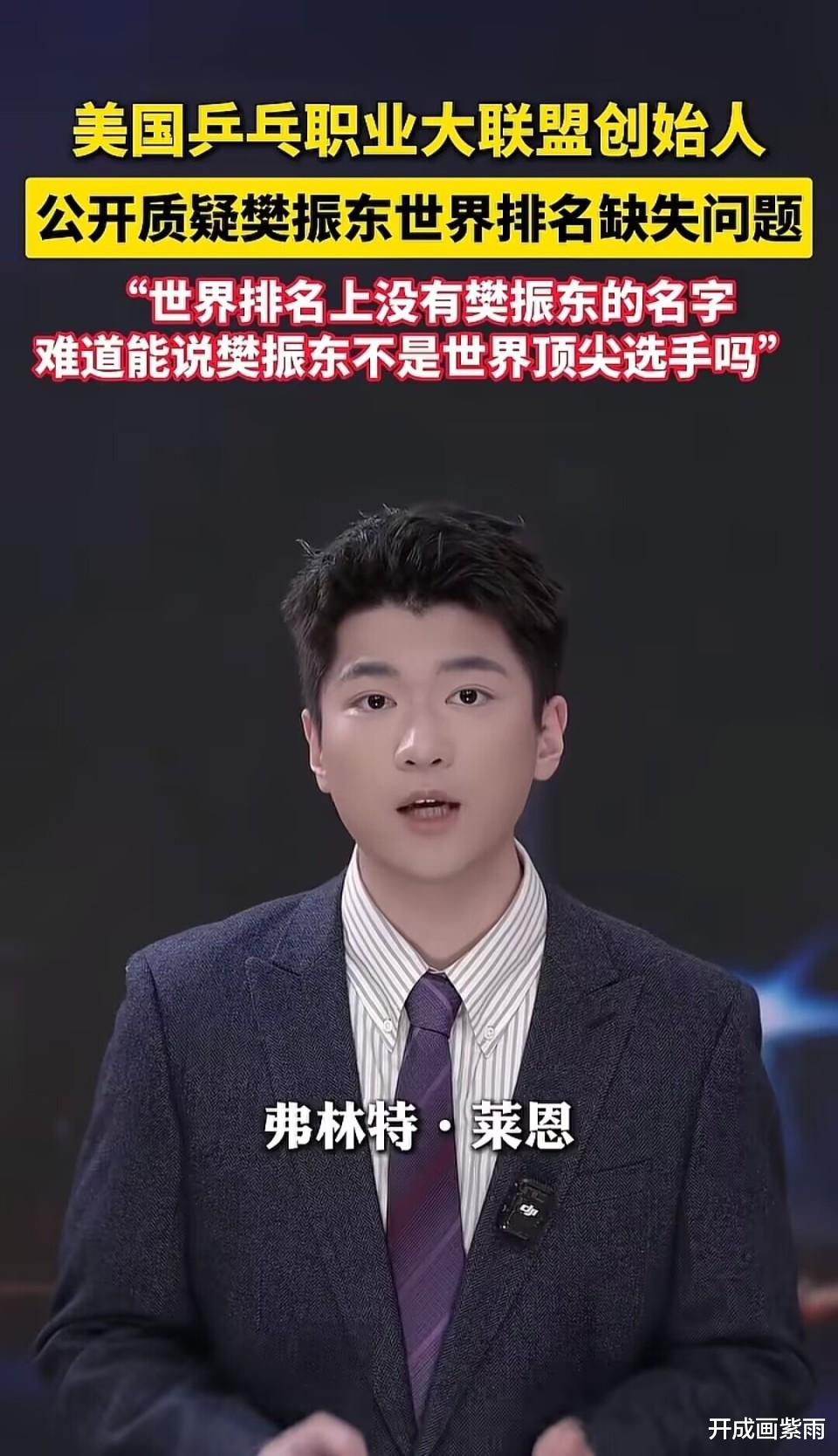 美国乒乓职业大联盟创始人弗莱特·莱恩公开质疑:樊振东世界排名缺失问题。
