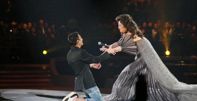 周润发作为叱咤影坛的影帝,在她的演唱会上,一出场就直接下跪,还朝她磕了个头。