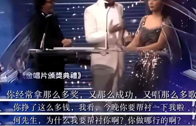 在一次颁奖典礼上,何盯着她丰满的身材说:“你挣了这么多钱,今晚来照顾一下我的生意呗?”