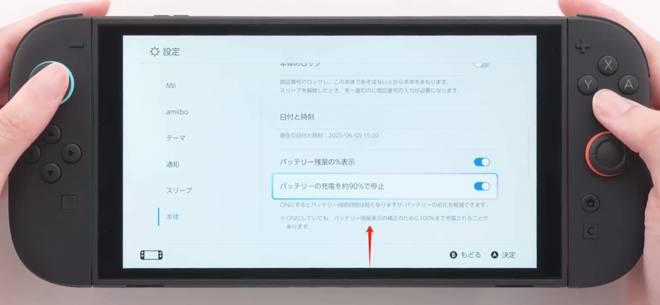 作为数码爱好者,我得给大家科普下锂电池的 “脾气”。手机、电脑的电池之所以越用越不耐用,罪魁祸首就是 “满电状态”。当电池长期保持 100% 电量时,内部的锂离子会过度活跃,就像人一直处于暴走状态,寿命自然大打折扣。而 Switch 2 的这个功能,相当于给电池套上了 “安全带”,让它始终保持在最健康的电量区间。