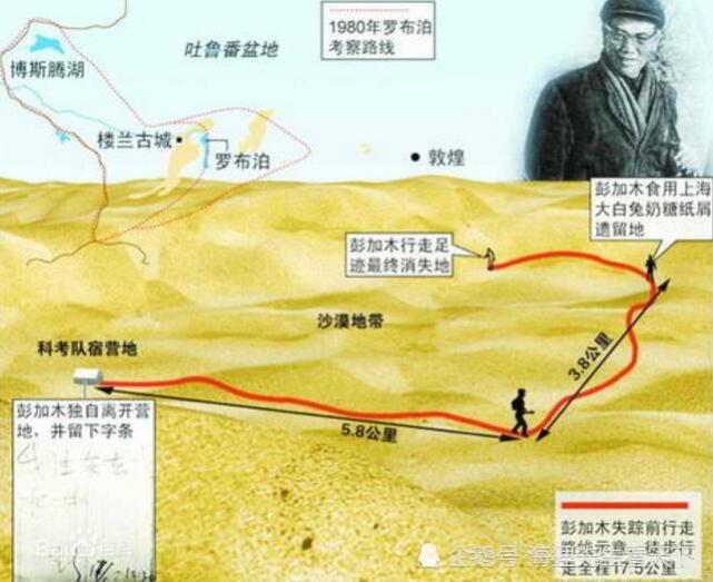 上个世纪80年代,我国著名植物病毒家彭加木和考察团一起去罗布泊考察重水,在此之前,他已经前往罗布泊考察过两次了。第一次是调查自然资源,考察自然条件,而且当时还有重大发现,在采集了水样和矿物标本之后,通过对河水中的钾含量检测,判断出罗布泊附近有天然重水。