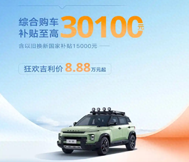 大家好,我是隔壁老王。今天咱们聊聊这台吉利牛仔,说实话,当我第一次看到8.88万起的价格时,差点以为看错了小数点。要知道现在随便买个像样点的SUV都得十几万,而这个号称"最便宜方盒子越野"的家伙,居然能把价格压到这么低,还带着30100元的综合补贴,这事儿得好好琢磨琢磨。