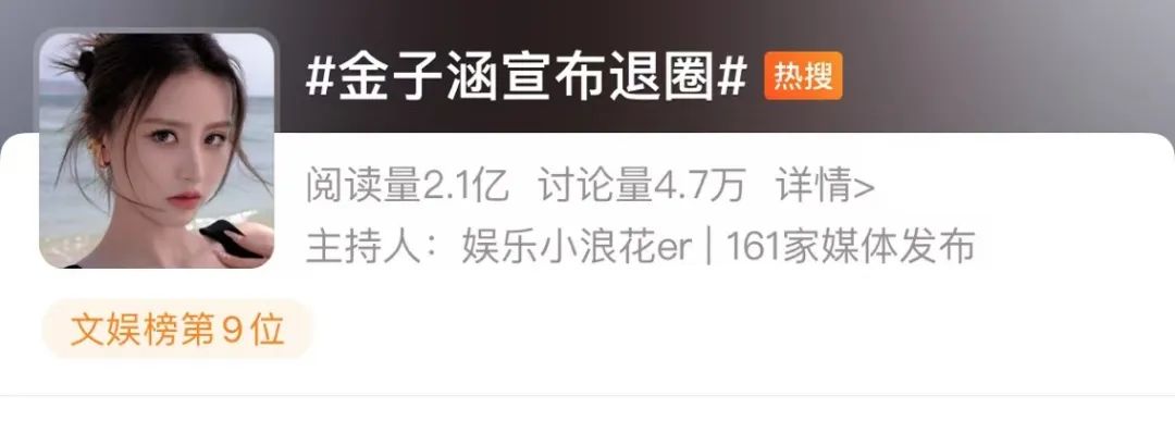 就在今天一条热搜激起了无数人的唏嘘。金子涵在微博写下“我将回归到自己的生活”,正式宣布退圈。