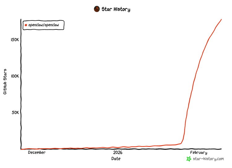 2026开年,一个名为OpenClaw的开源项目以闪电般速度席卷GitHub,一天斩获9000颗星。两周后,星标突破17万,一时间,标志性的小龙虾图案登上各大社交平台头版。