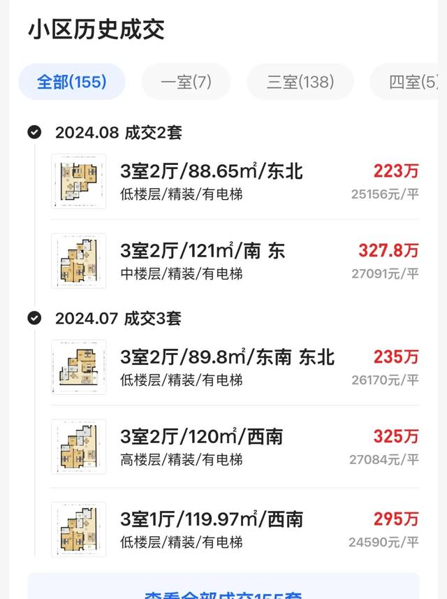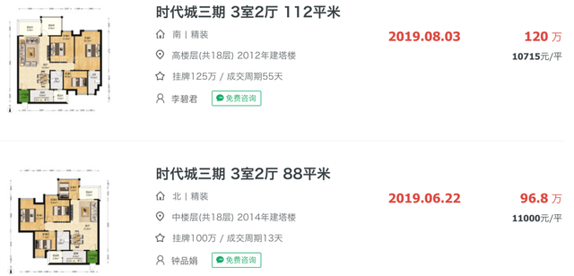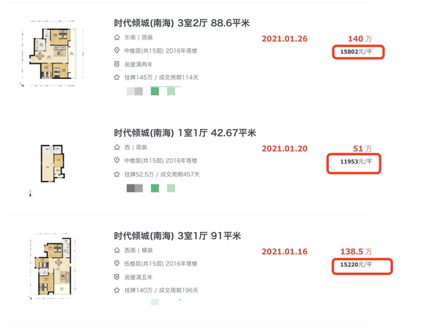低的则去到9038元/平,只需120万就能买到一套楼龄不到10年,132平的三房。
