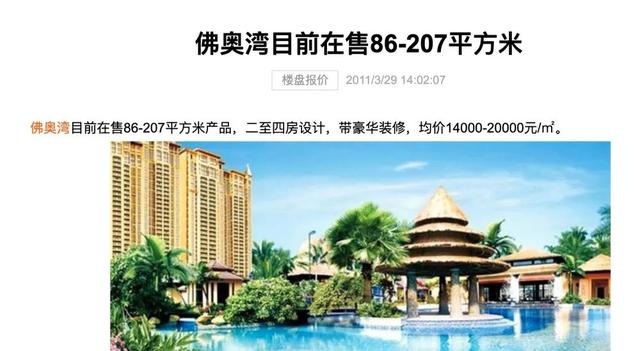 想当年,2011年佛奥湾开盘时,价格可是在14000-20000元/平的范围,比千灯湖势头还猛。