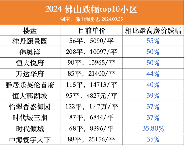 今天,小编整理出了这份佛山二手房跌幅TOP10名单,以供大家参考。