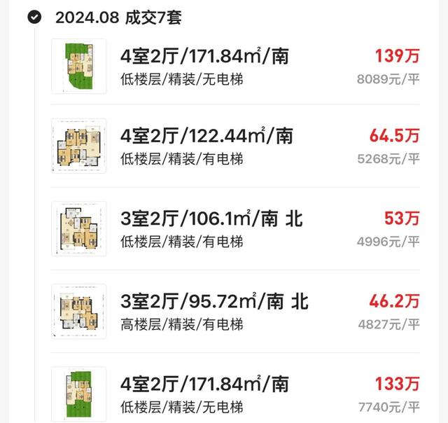 122平四房,成交单价1.47万/平,整体降幅约37%,直接回到10年前的水平。