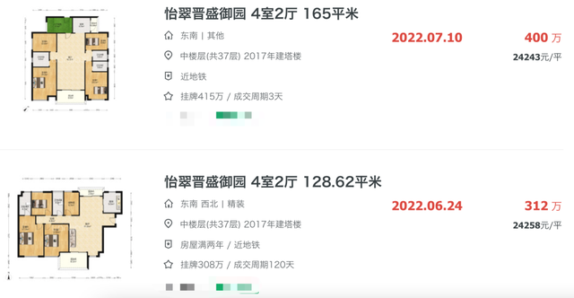 2020年初,怡翠晋盛御园二手基本在2万+/平;到2022年中,2.4万/平左右。那时候,大家都有美好的未来。