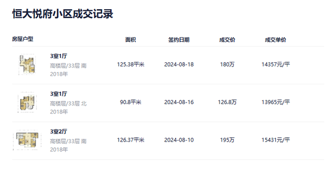 2021年楼市最为红火,彼时恒大悦府二手盘最高已将近3万/平。