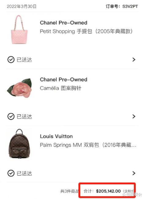 一件礼服、一件开衫、一对耳环加一个包包,四件商品消费近百万。