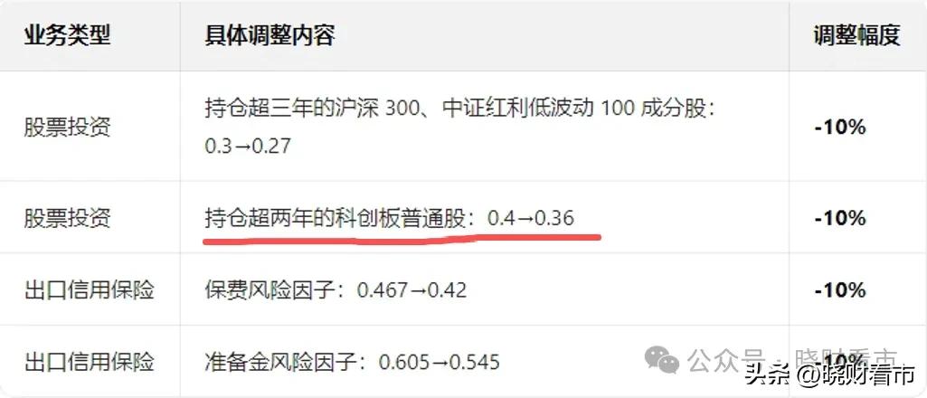 国家金融监管总局调整保险公司风险因子,沪深300持仓超3年风险从0.3降到0.27,科创板超2年从0.4降到0.36!