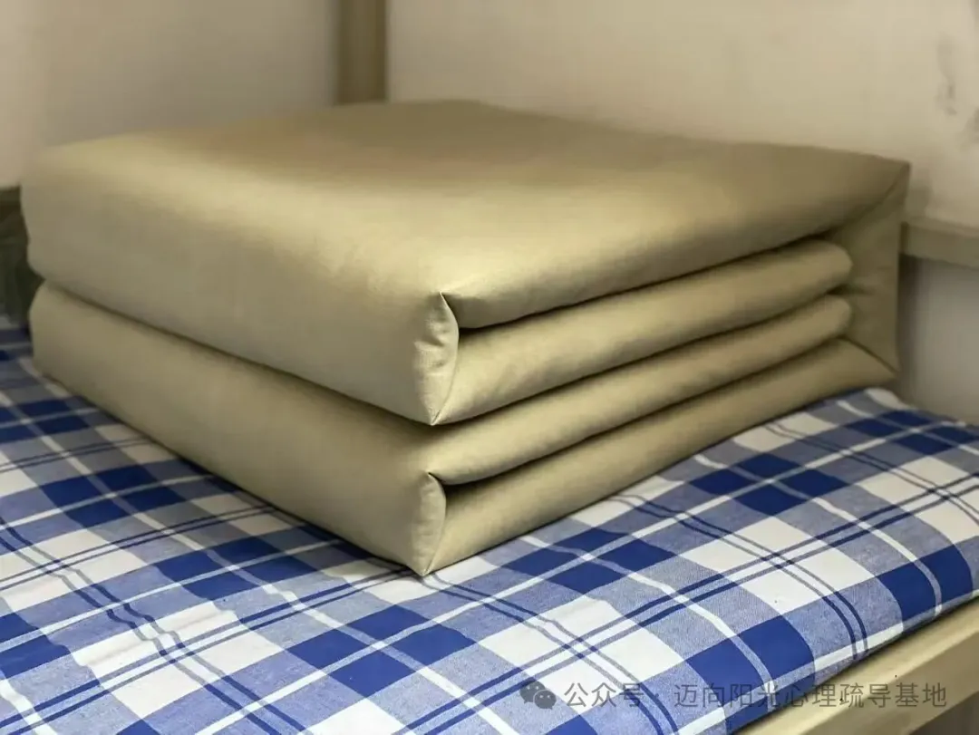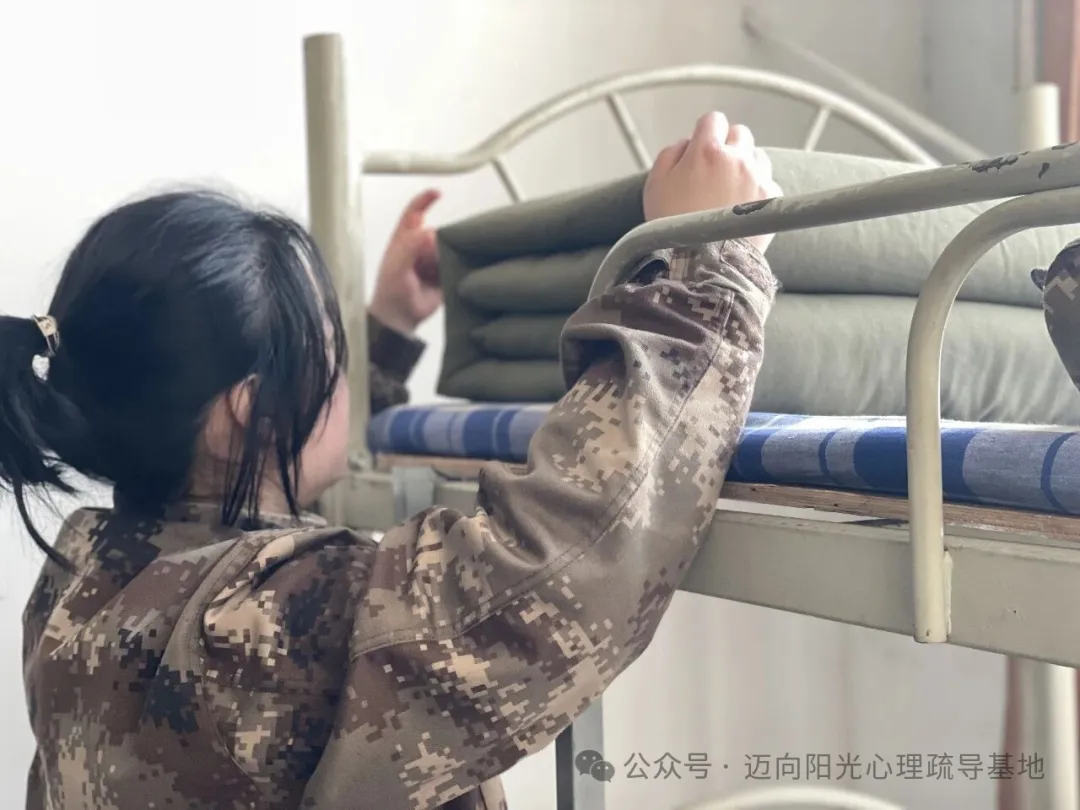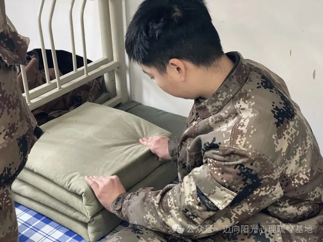 迈向阳光心理疏导基地将继续通过此类实践活动,将素质教育融入日常生活细节中,帮助青少年在规范中学会自律,在挑战中收获成长,真正做到“内务显精神,叠被见真章”,为青少年的全面发展和阳光心态的培养奠定坚实基础。