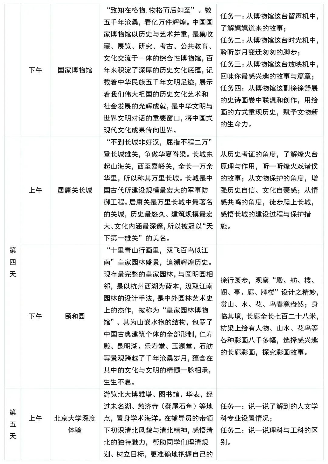 ②“时间安排”为建议时间,出于研学线路顺畅度及交通到达时间因素考虑,主办方可对研学线路顺序、单研学点活动时长进行调整,以保障活动顺畅。