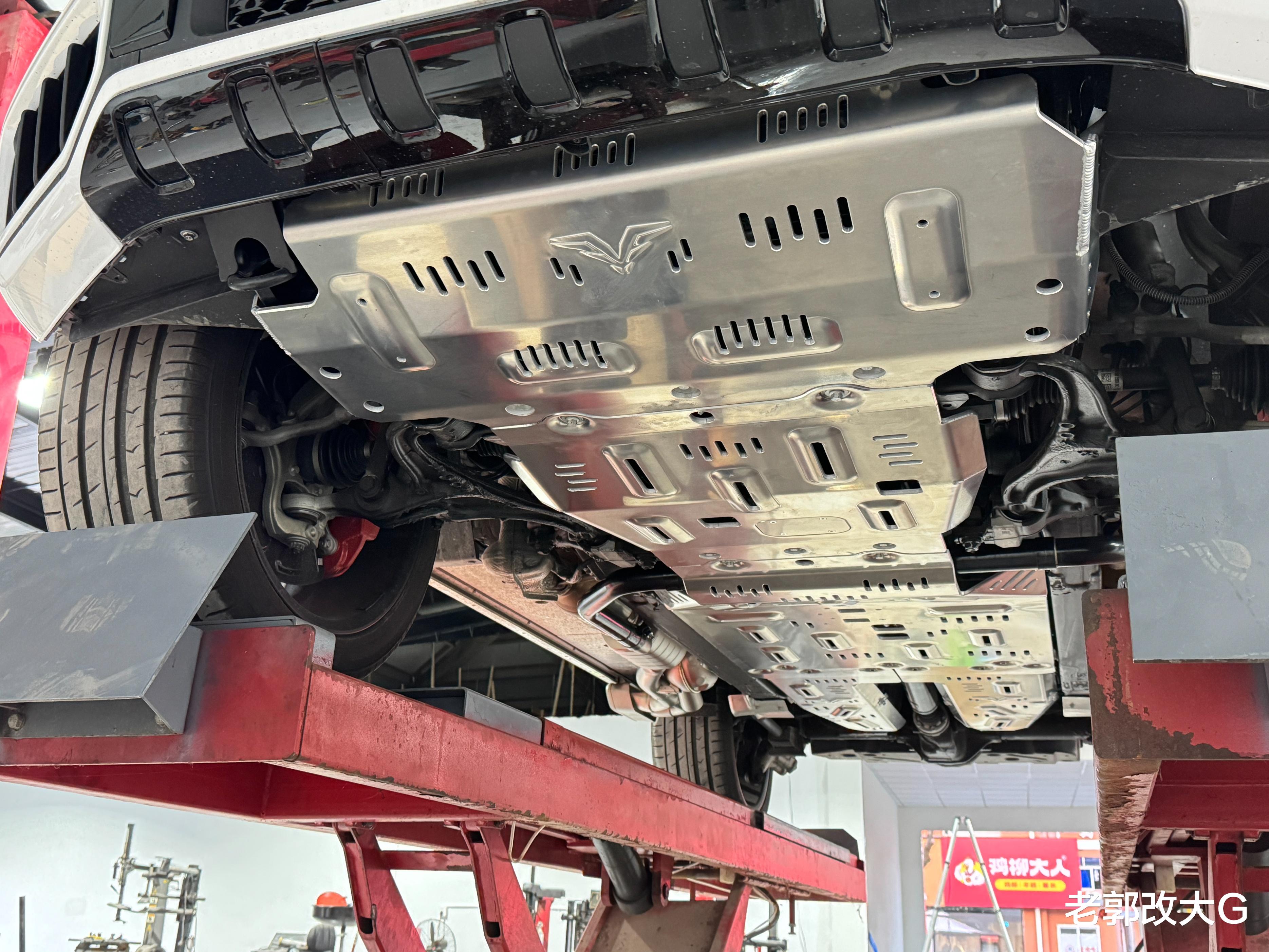 考虑到车主偶尔会进行轻度越野,团队为其加装了铝镁合金底盘护板。相比普通钢板护板,这种材质更轻,但强度更高,能有效抵御碎石、坑洼路面的冲击。