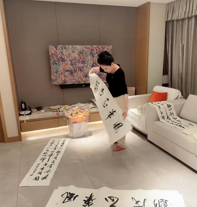 前段时间她在北京排练话剧的时候,还跟大家分享自己的“墨宝”,虽然她没有凑近给大家展示,但是这样看上去就能感受到字里蕴含的气场。