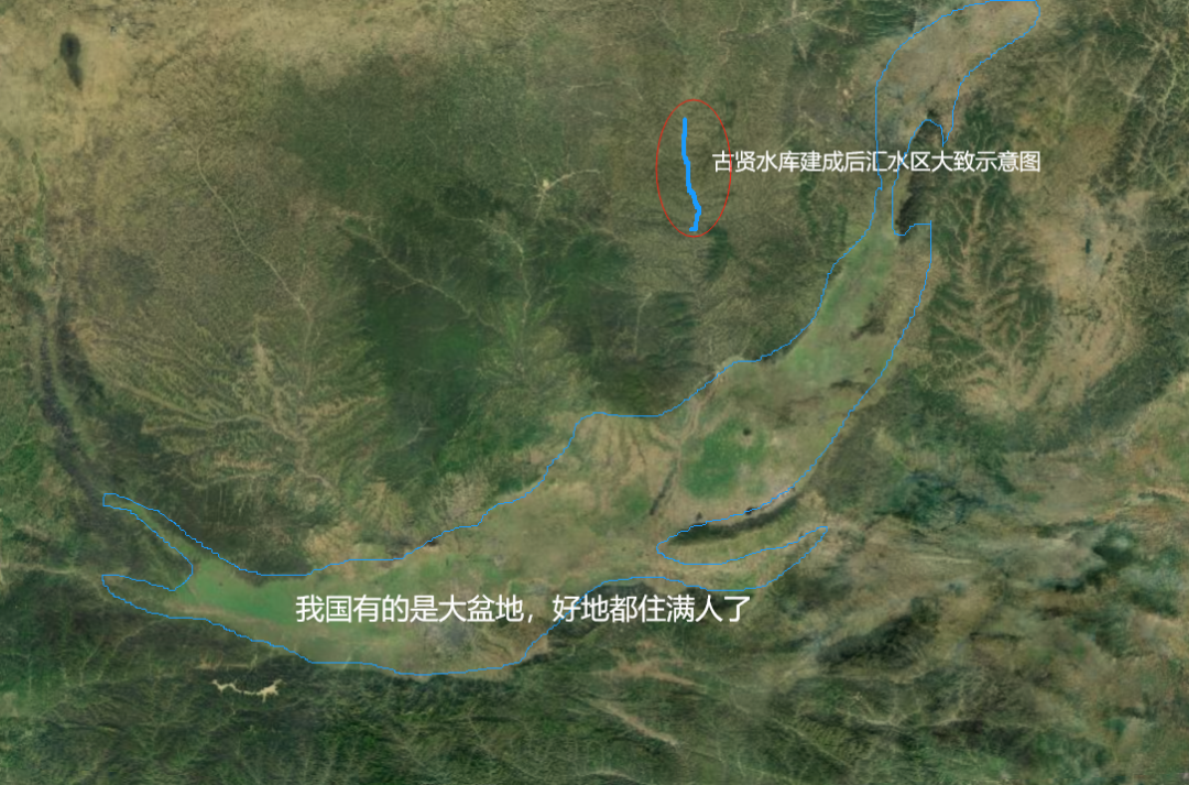 古贤村这个位置建设大水库还是比较理想的:1.北方干旱地区水资源非常珍贵;2.黄河这个位置每年有三四百亿方来水,而且随着南水北调工程的实施,华北地区用上很多长江流域的水,能腾出不少黄河的供水额度给晋陕地区使用;3.晋陕大峡谷是一个不错的储水空间,虽然不如盆地开阔,至少又长又深,预计能形成一个200公里长、1公里宽,面积大约200平方公里的人工湖,储水量接近130亿方。大峡谷内部千沟万壑,人口和土地不多,付出的经济补偿代价可控。这一条是非常重要的,我国最不缺盆地,建不了大水库的核心问题就是,有水资源的盆地,早就住满了人,布满了经济;