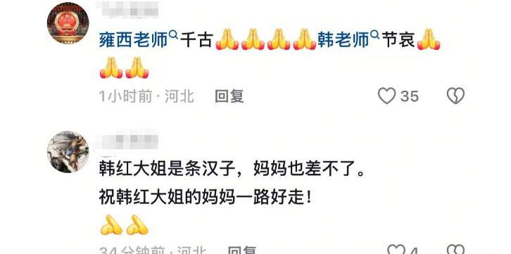 网友们也纷纷在相关视频的评论区留言,表达对雍西的敬意和对韩红的慰问。