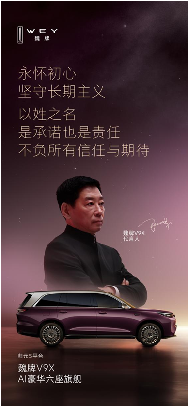 从十年前以姓氏命名魏牌,到当下以代言人身份亮相魏牌V9X造型美学全球首秀,回望魏建军的创业之路,有3个“第一”格外醒目:第一个用自己姓氏命名品牌、第一个亲自给车型代言、第一个把中国元素的具象化表达融入到车型设计。