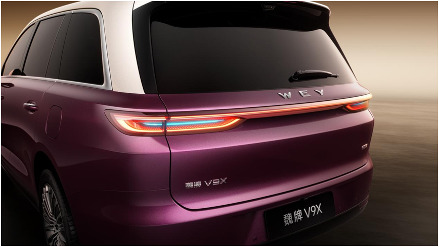 魏牌V9X前脸以中轴对称“立其气”、重檐结构“守其神”,将东方建筑的精气神儿定格于车头,并有悬浮车标画龙点睛;融合侧身曲面,金镶玉把手、飞檐烽火台尾灯及小蓝灯等设计,优雅灵动且安全实用;内饰以环抱式布局营造家庭温馨氛围,以媲美MPV的六座空间打造舒适体验。同时,魏牌V9X从用户需求出发,通过行业首创门侧无线充电板、多元储物空间等细节,让豪华落地日常出行的方寸之间。