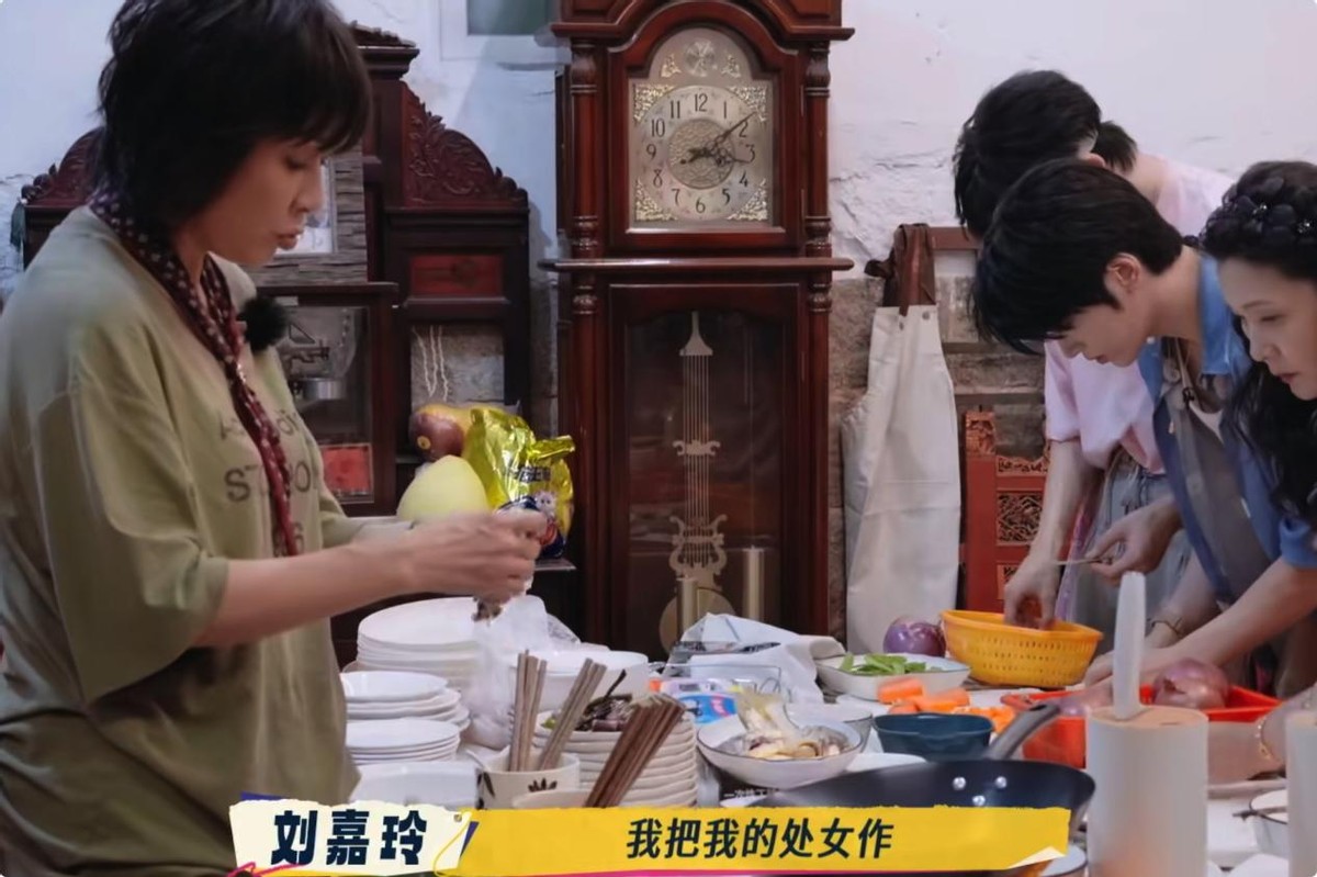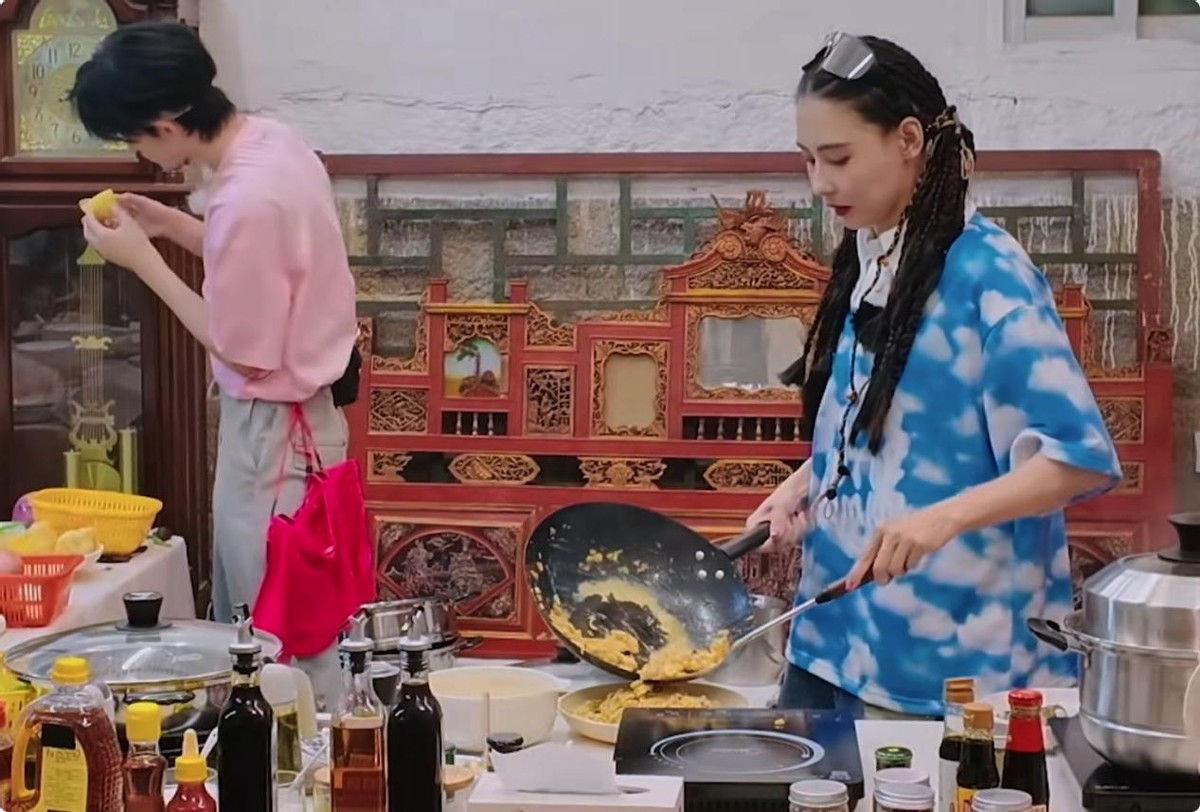 刘晓庆则全程当旁观者,双手背在身后站在厨房门口,偶尔点评两句,活脱脱一个视察工作的领导。