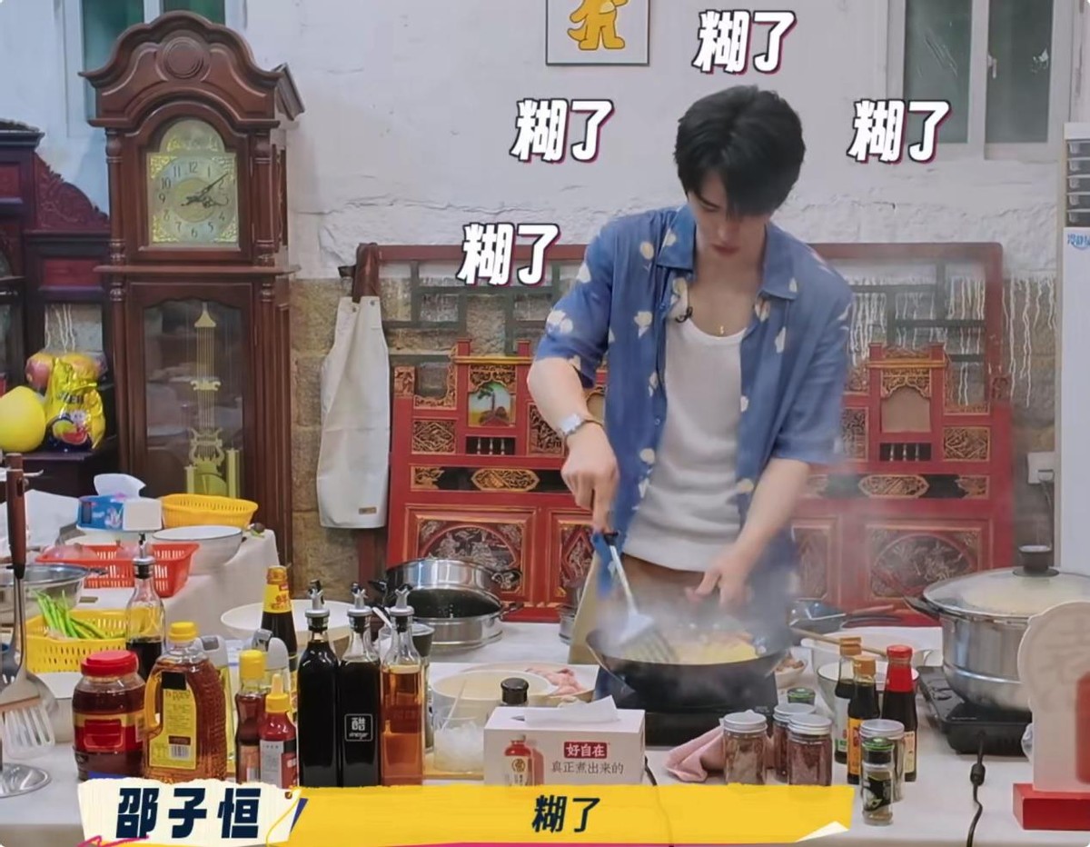 还有两位嘉宾干脆当起了工具人,负责洗菜切菜,却把土豆切得粗细不一,青菜洗得还带着泥沙,场面一度十分混乱。