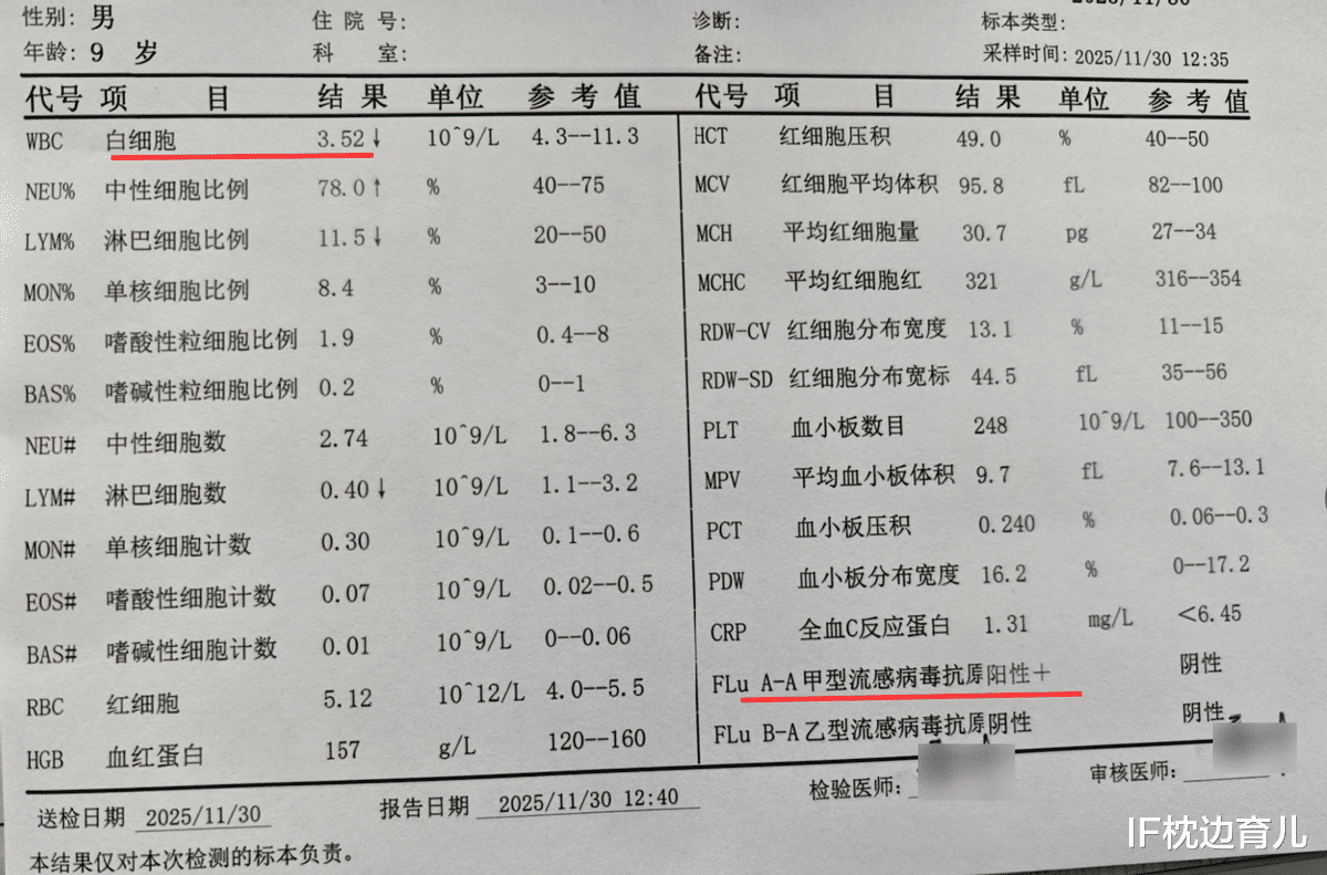 本以为大宝好了去上学,可以庆祝一下了,结果二宝又跟着来了,而且症状和哥哥相似,发烧、吐,早上在家吃了药,接着就去了医院,结果抽血检查后,两人病情不同,二宝是甲流。