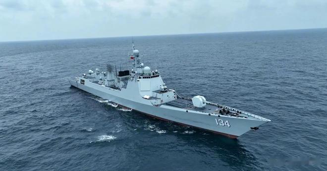 1.绍兴舰舷号134,是我国自主设计建造的052D改进型导弹驱逐舰,2022年3月入列,满载排水量7000余吨。该舰具有较强的战场探测感知、电子水声对抗及综合攻防能力,装备有先进的相控阵雷达系统,能够对海空目标进行高效搜索、跟踪和定位。其武器系统十分强大,配备有多种导弹,如射程较远的防空导弹,可有效应对空中威胁,构建起编队区域防空的重要防线;反舰导弹则具备高速度、大威力的特点,主要担负编队区域防空、对海突击等任务。