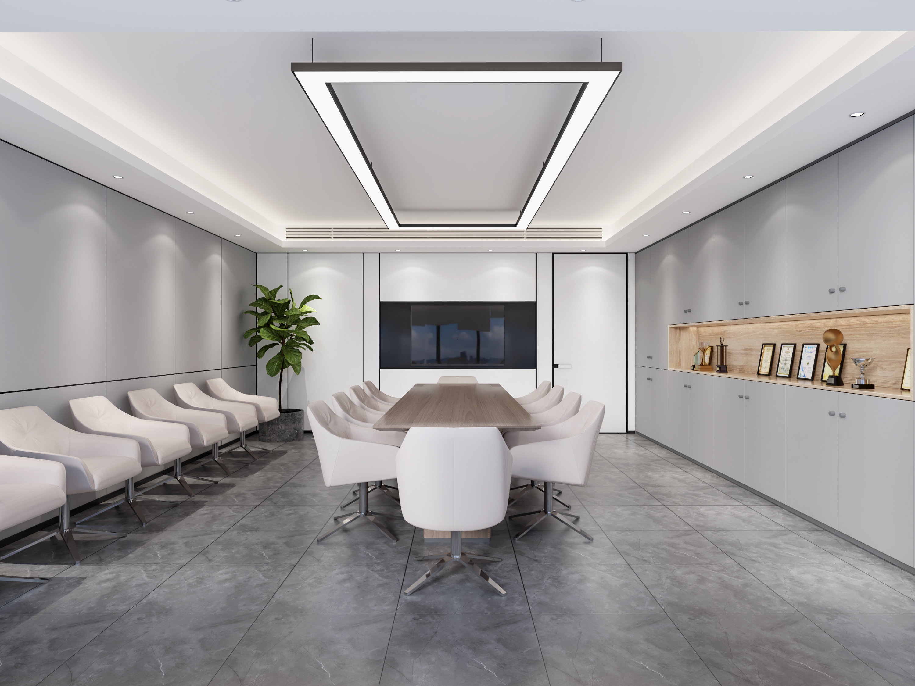 第一印象是秩序与荣誉。规整的长桌、数量精确的座椅,指向清晰的议程与高效的沟通。但墙上嵌入的显示屏与两侧陈列的奖杯,又悄然揭示了它的另一重身份:这里不仅是讨论的场所,更是成果的见证地与信心的凝聚点。柔和的灯光与点缀的绿植,则平衡了正式感,让共识能在专注且不过度紧绷的氛围中达成。