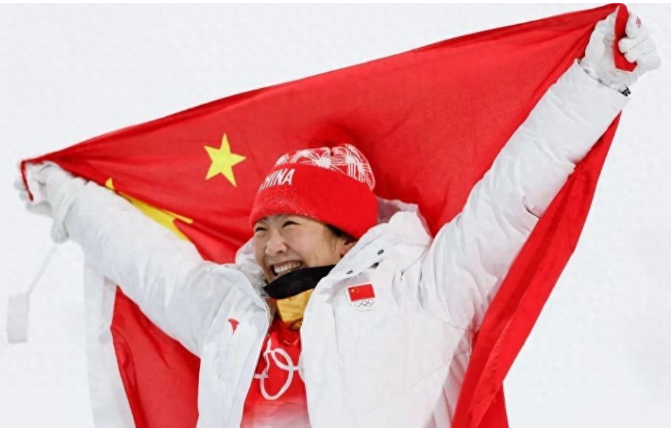 徐梦桃不光是个运动员,还是个旗手。在北京冬奥会闭幕式上,她举着国旗走在最前面。那种自豪感肯定无法用语言形容。我在想她走在那么多人前面,会不会紧张不过看她的表情,好像挺淡定的。可能经历过那么多大场面,这种事对她来说已经是小菜一碟了吧。