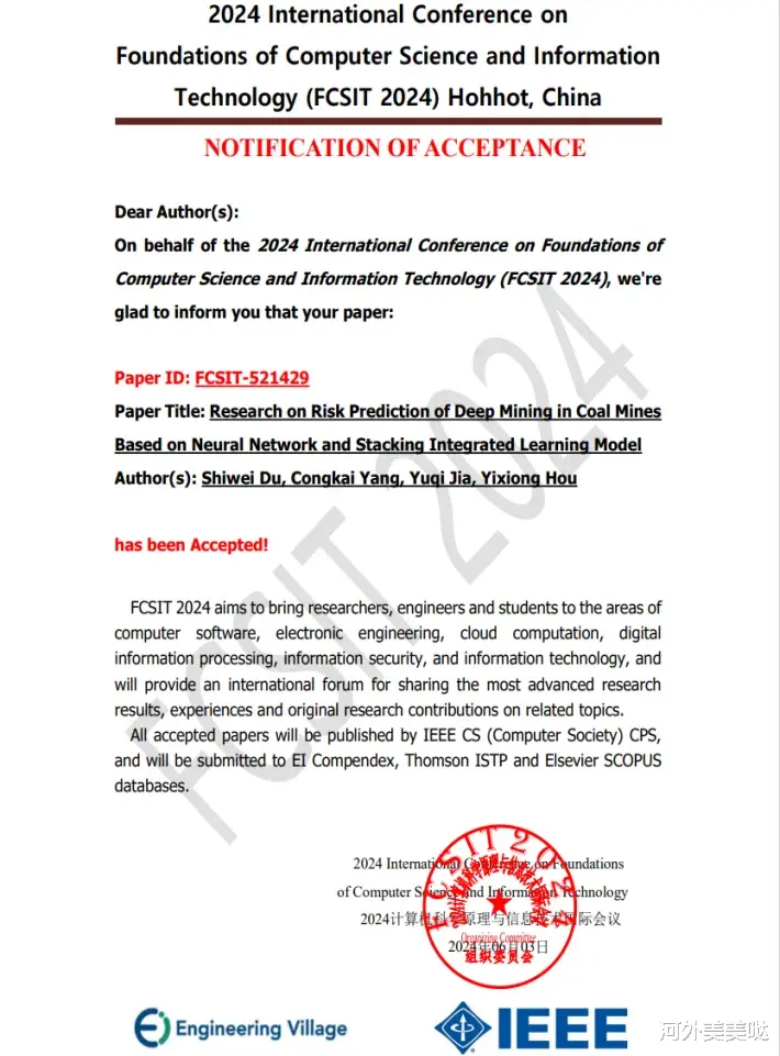喜讯!河北外国语学院计算机学院区块链工程专业同学杜世伟的科研论文被国际顶级期刊IEEE(EI检索收录)录用发表!