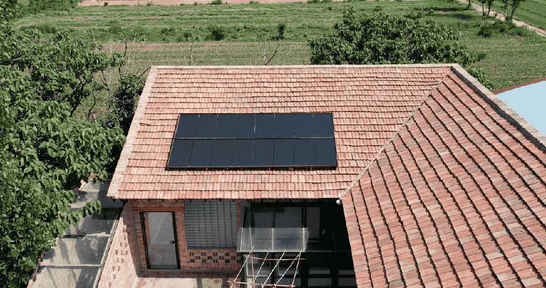 屋顶之上,我们放置了18块光伏太阳能板,平均下来一天可以发18度电,我们把发的电卖到国家电网,再从国家电网平行购买。折算下来,一年基本不需要另花电费。