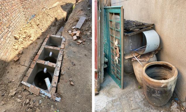 传统的三缸装置其实是用混凝土砌筑出来的,但我们想了一个低成本的替代方案:把村里收集来的废弃的米缸埋在地下,里面放入一些净化介质,如碎瓦片、碎砖块等,并在上层用管道进行连接,一个家庭版的污水处理装置就做好了。