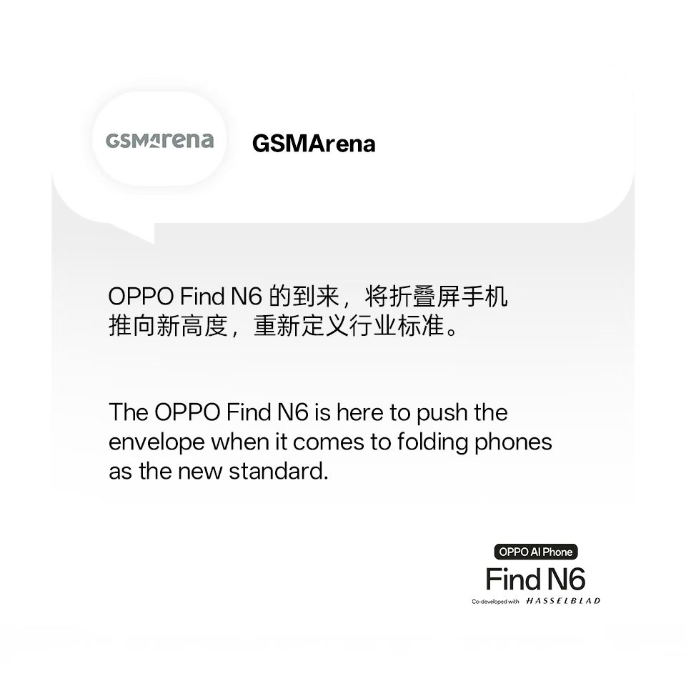 就在3月17日,OPPO旗下的新一代折叠屏手机OPPO Find N6正式发布,获得了海内外媒体的一致好评,MrMobile直言OPPO Find N6是“五年以来最令人惊艳的折叠屏手机”,GSMArena更是给出了高度评价——“OPPO FindN6 的到来,将折叠屏手机推向新高度,重新定义行业标准”!