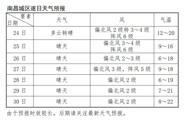 预计本周我市以晴好天气为主。其中,24-25日受干冷空气影响,多云转晴,偏北风加大到3~4级,阵风6级左右,平均气温下降3~5℃。26-30日以晴为主,气温逐渐回升。