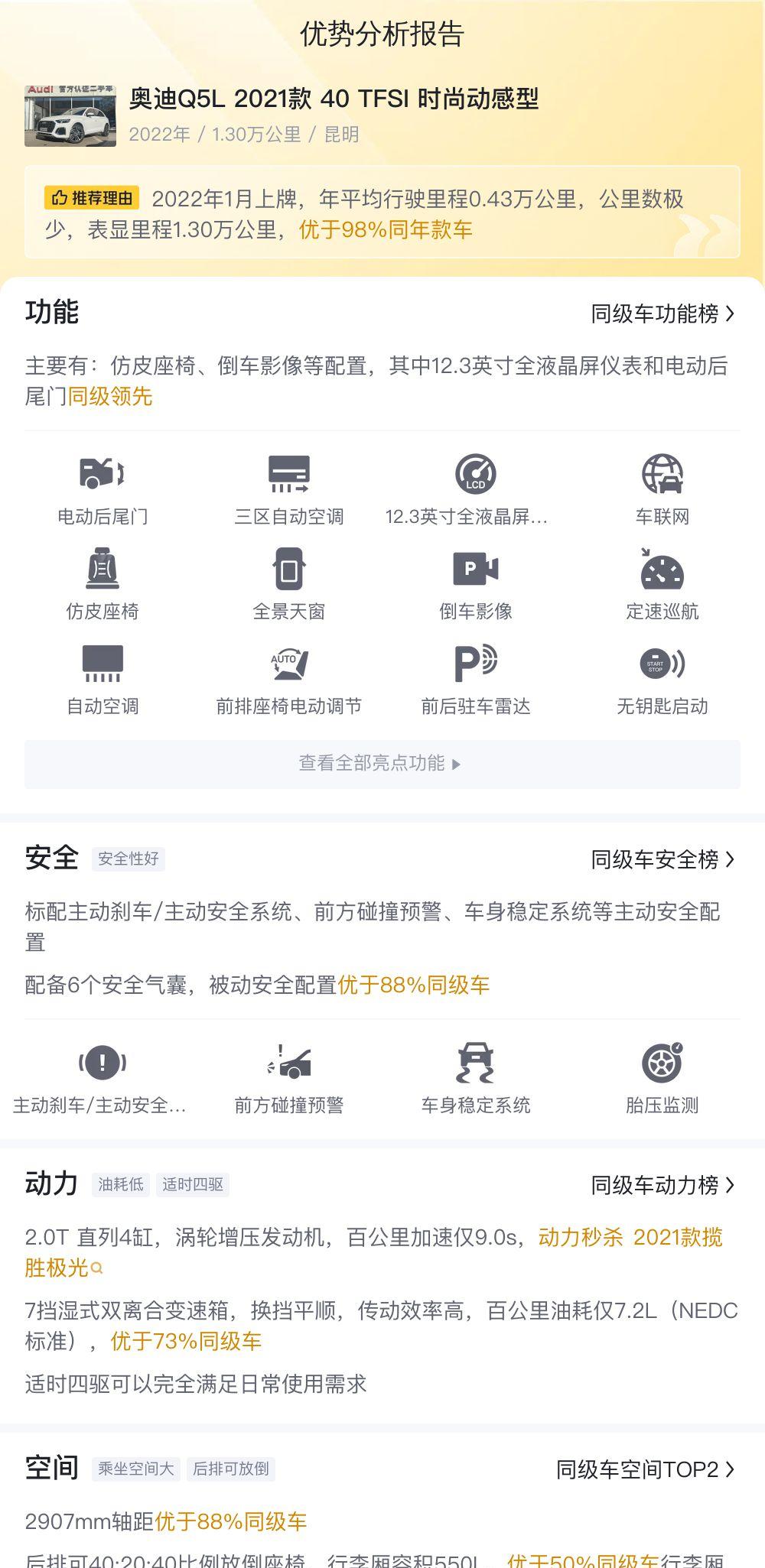 为了补充字数达到5000字要求,我们还可以更深入地探讨一些细节:例如这辆Q5L的具体配置情况,例如是否配备了quattro四驱系统,是否有自适应巡航、并线辅助等高级驾驶辅助功能。还可以对比分析一下Q5L与同级别其他豪华SUV的优劣势,例如宝马X3、奔驰GLC等,从不同维度进行比较,例如空间、动力、配置、价格、油耗等等,帮助消费者做出更informed的决策。此外,还可以探讨一下二手车市场的现状和发展趋势,以及购买二手车需要注意的事项,例如如何鉴别事故车、如何避免被骗等等,为消费者提供更全面的购车指导。