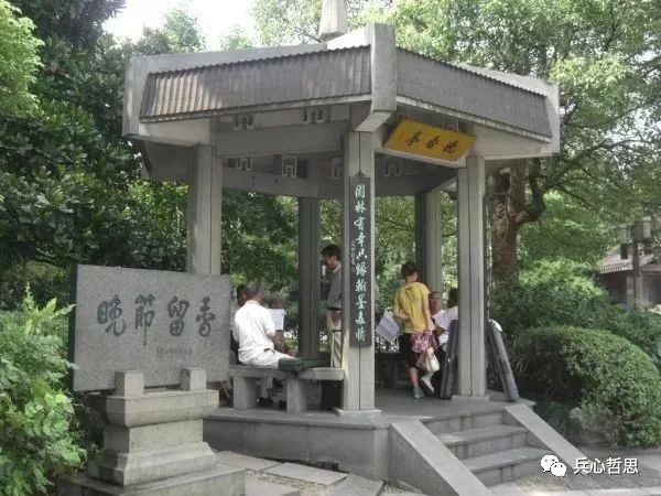 匾额“晚香亭”,为当代书法大家沙孟海所题,字迹雄浑刚健、气韵生动。每日清晨、傍晚,这里都会集聚一些老年越剧票友,三五成群,戏声悠扬,吹拉弹唱,各得其乐,正映“晚香亭”乐度晚年之意。