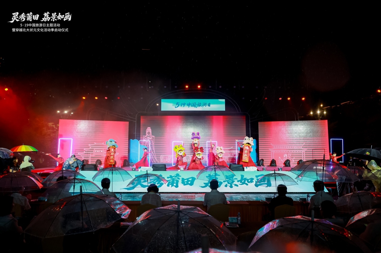 尽管细雨绵绵,演职人员冒雨坚守岗位,以专业精神呈现沉浸式实景演出、非遗展演等创新节目,将莆田千年文脉与荔乡风情融入雨幕光影。这场雨中绽放的文旅盛事,既彰显莆田文旅资源魅力,更以“戏比天大”的匠心,为“中国旅游日”镌刻独特文化印记。