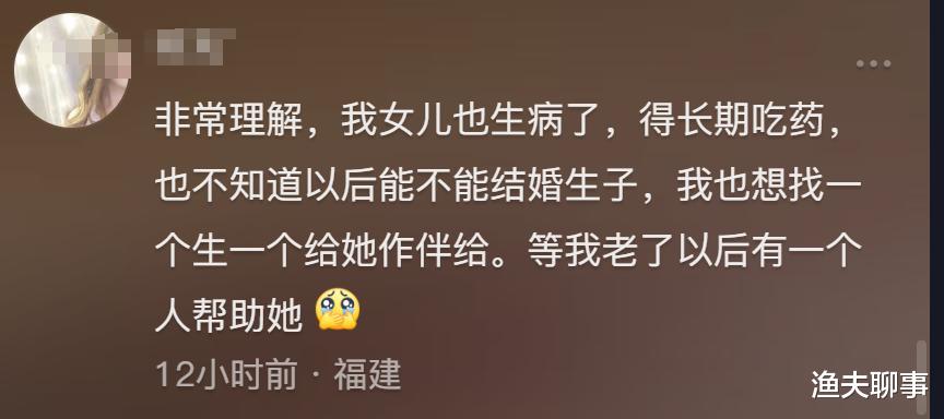 她自己是独生子女,成长过程中比较孤单,现在父母也已经不在了,儿子又生病,万一她自己有个三长两短,那么大儿子就太可怜了,所以她想着生个二胎,这样两个孩子长大后有个照应。