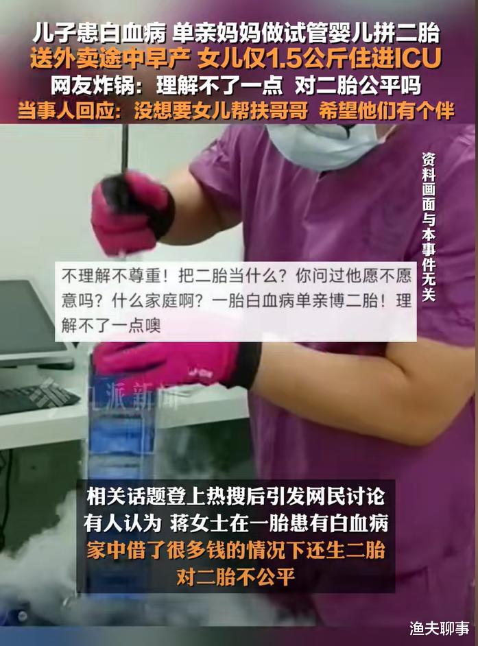 看到这样一个新闻,一个单亲妈通过试管的方式拼了个二胎,送外卖途中早产,才3斤重的二胎女儿进了ICU。