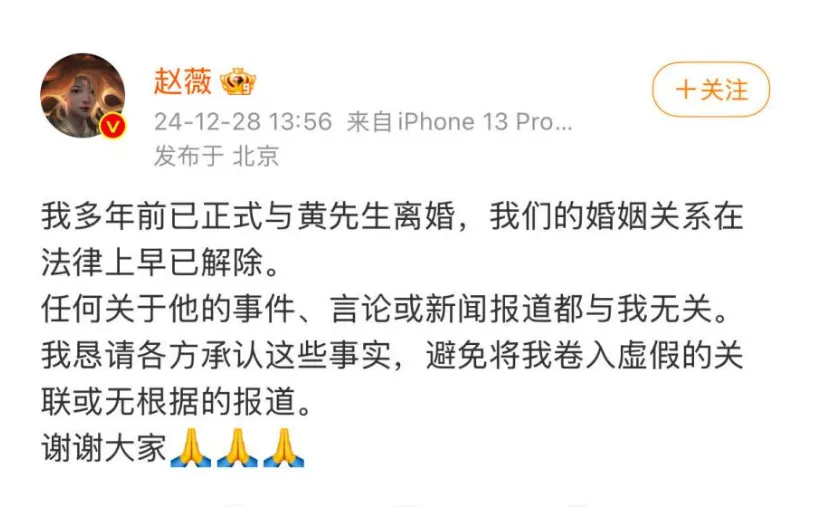先是以琼瑶去世为契机,打破三年沉默;紧接着又来了个惊天大招,高调宣布与债主黄有龙早已离婚。短短20天内两度霸占热搜,赵薇这盘棋,下得可真够精的。