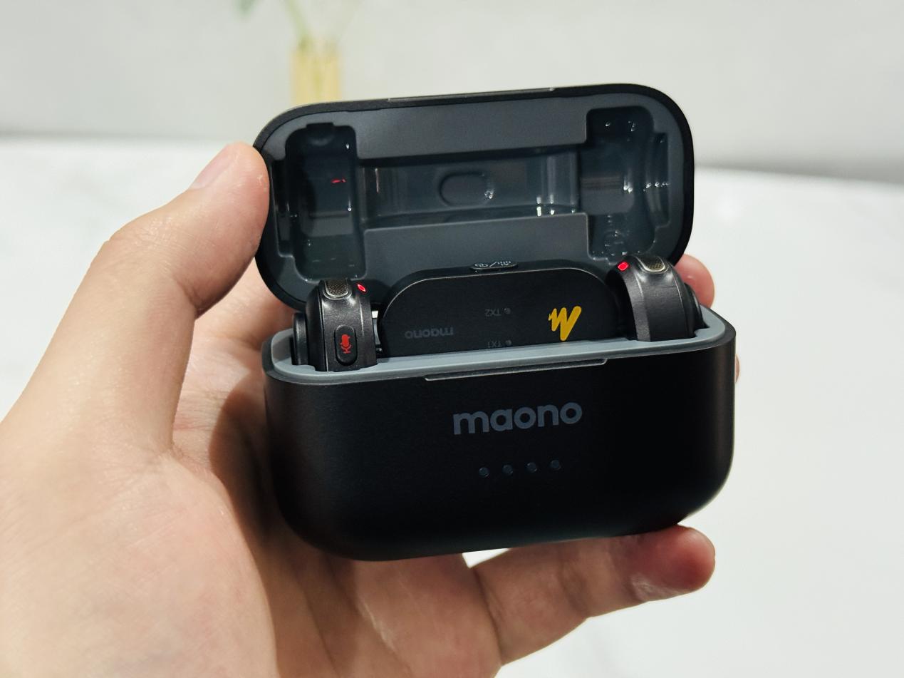 此外,闪克Wave T5 配备了一个便携充电盒,能够在移动拍摄时随时充电,确保设备的持续使用。该充电盒的设计也非常智能,可以保护麦克风免受损坏并便于收纳,是出门拍摄时必备的配件。