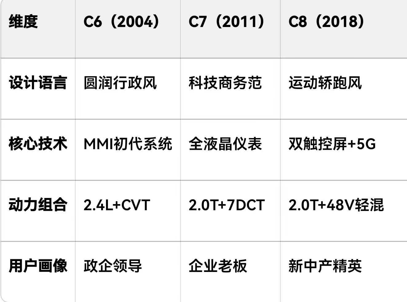 C8年轻化与科技化的终极博弈C8是2018-至今的底盘版本,是年轻化与科技化的终极博弈,而且也到了奥迪的迭代周期也就是C9版本的到来,那我们就先品评着c8,畅想着C9。C8款,开过10多台,近20台。咱们一起细说说。